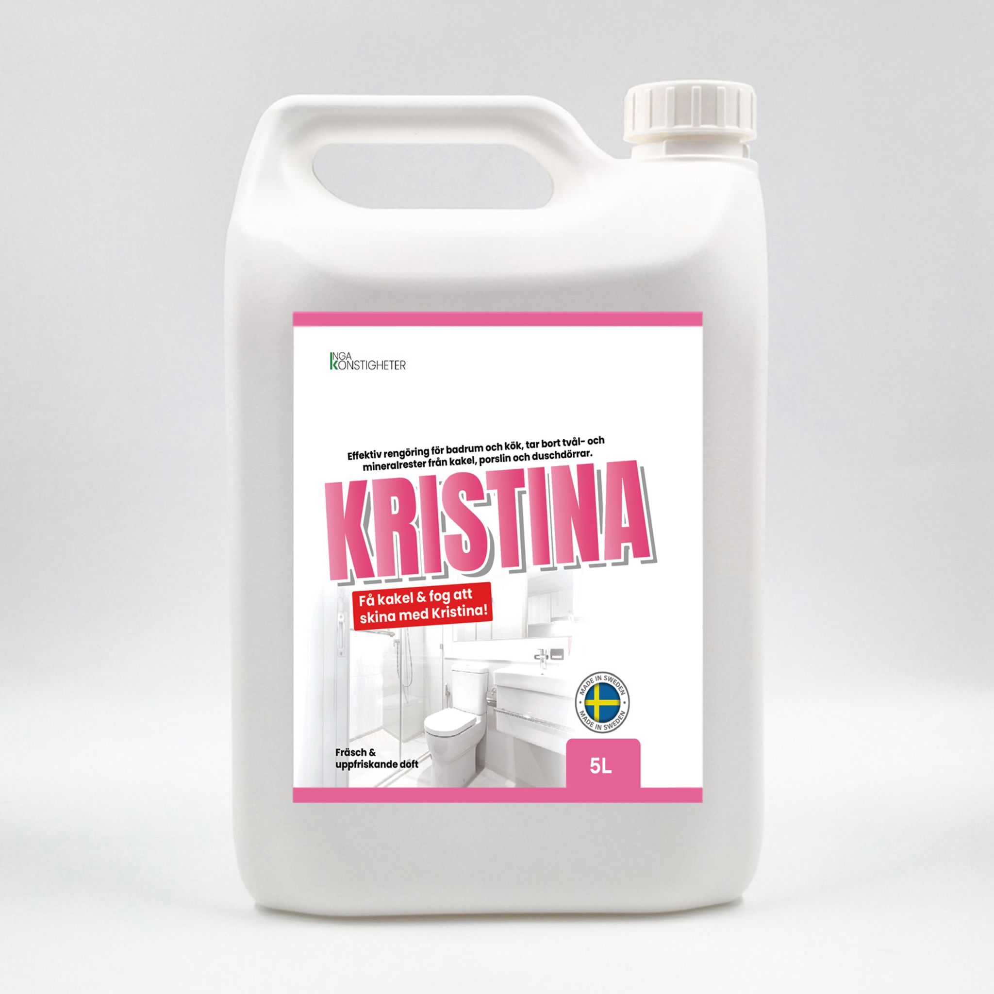 KRISTINA er et højtydende rengøringsmiddel til rengøring af fliser og fuger, der effektivt fjerner misfarvninger, kalk, sæberester, mineralaflejringer og andet snavs fra fliser, klinker, fuger og andre hårde overflader. Produktet gør det nemt at holde badeværelse og køkken skinnende rene og efterlader en frisk og opfriskende duft.